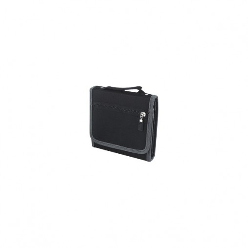 Set de 26 prácticas herramientas en Estuche plegable de tela raquelada negra.