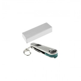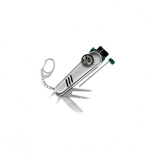 Cortaplumas de Golf de Acero Inoxidable con 7 funciones. Incluye Cuchillo, Levanta-Pique corto, Levanta-Pique largo, Cepillo, Bolígrafo tinta negra, Marcador magnético y llavero. Presentación en caja de regalo plateada.
