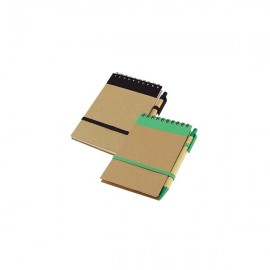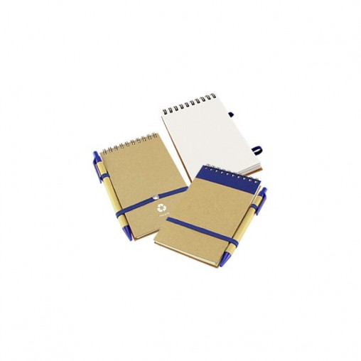Libreta Ecológica con tapas de cartón reciclado, 70 hojas interiores blancas (croqueras). Incluye cierre elasticado de color y bolígrafo ecológico al tono.