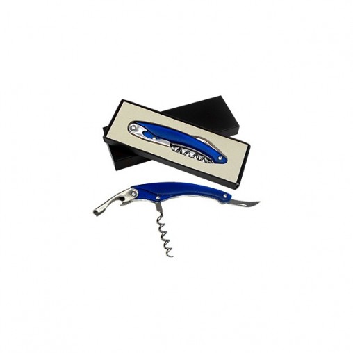 Descorchador - destapador - abresellos de Acero Inoxidable con Mango Ergonómico color Frozen. Presentación en caja negra laminada opaca.